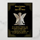 Bienvenue à Noël avec notre Carte Foil de Noël Angel qui montre un ange tout habillé en blanc avec un halo au-dessus de sa tête. La belle citation et l'image sont toutes imprimées sur un arrière - plan noir et entourées d'une bordure en feuille d'or. Tous les textes et bordures de feuille sont disponibles en or, or rose ou argent.
