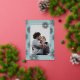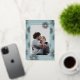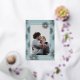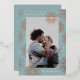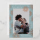 Ce carte photo de Nouvel An est bordé d'un véritable feu d'artifice rose en or et d'étoiles brillantes et blanches sur un arrière - plan bleu turquoise minty. Le dos a une photo et un espace supplémentaire pour un message plus long.