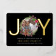Un Joyeux Noël Joy Real Foil Détail Carte photo de vacances de Ricaso - conçu avec un texte de typographie de papier grincheux à l'avant et un modèle de placement de photos avec un entourage délicat de couronnes - ce beau design moderne est sûr d'être un succès avec la famille et les amis .. facile d'ajouter votre propre texte et photo - Envoyer vos salutations dans le style de ce vacances avec une carte personnalisée
