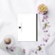 Cartes pour notes de papeterie plat et vierge avec votre initiale monogramme sur un carré de papier et le nom ci-dessous en police masculine. Au fond, il y a une bordure en feuille.