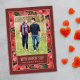 Cette carte de voeux chic pour la Saint-Valentin vous propose un accueil de vacances simple et un espace pour une grande photo de client, entourée d'un cadre décoratif vintage rose. Le design est pressé avec de l'or ou du papier argenté. Le verso de la carte comporte un motif à rayures rempli des mêmes illustrations de rose vintage.