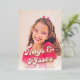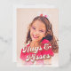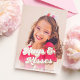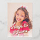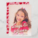 Un design carte photo de style rétro avec typographie rose en or qui dit "Hugs & Kisses" et un accueil personnalisé de la Saint Valentin avec signature.
