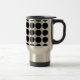 Mignonne et tendance Mini Pois Travel Mug. Ce design présente des pois en petits cercles en noir et blanc. Un texte peut être ajouté à cette conception pour lui donner une touche personnelle.