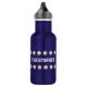 Cette bouteille d'eau personnalisée par bleu est un cadeau d'amusement pour un joueur de baseball, un entraîneur, un fan, ou une équipe - ou un arbitre. Décoré de deux rangées des base-ball. Le NOM répète 2 fois - faciles à modifier - la changent juste dans un endroit. Soutient le texte jusqu'à 15 caractères. Capture très lumineuse et d'oeil. Tous droits réservés © Alan 2015 et Marcia Socolik.