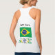 Le débardeur féminin porte le drapeau brésilien ou Bandeira do Brasil, avec le mot BRASIL ci-dessous dans les couleurs du drapeau. Ci-dessus, un endroit pour un nom pour personnaliser ou customiser votre cadeau. Le BRÉSIL est l'orthographe portugaise du BRÉSIL. Le portugais est la langue parlée au Brésil.