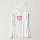 Ce débardeur est doté d'un coeur rose vif contenant des lettres coques inférieures arrondies et audacieuses, blanches, une abréviation ludique pour Indiana, l'état hoosier.