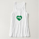 Ce t-shirt débardeur est doté d'un coeur vert vif contenant des lettres coques basses blanches, arrondies et audacieuses, une version ludique de l'abréviation de New York, l'état empire.