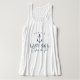 Les débardeurs correspondants pour votre soirée nautique ou nautique présentent l'illustration de l'ancre d'un navire bleu marine surmontée d'un petit coeur, avec deux lignes de texte personnalisé en dessous; illustrée par "Dernier Sail Before the Veil". Ajoutez le nom de la mariée courbé sur le dessus. Les couleurs peuvent être modifiées pour correspondre à vos couleurs préférées à l'aide de l'outil de design de Zazzle.