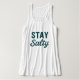 Whether you're salty from the sea breeze, or full of salty attitude, this graphic print 'Stay Salty' scoop neck tank top is for you. The lightly distressed teal vintage and modern fonts create a playful, subtly sarcastic statement. Perfect for anyone who lives in flip flops and a laidback coastal mindset.
