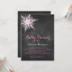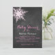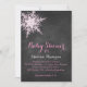 Un script de ruban fantaisiste et un flocon de neige dessiné à la main accentuent cette invitation baby shower de tableau noir. Il vous suffit de nous contacter à prettyfancyinvites@gmail.com, si vous avez besoin de coordonner des éléments ou d'aider à personnaliser. Faites défiler le curseur vers le bas pour voir l'estampille de coordination.