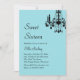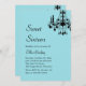 Un lustre en cristal, un style soigné et une teinte turquoise branchée donnent le ton de cette invitation et de cet événement. Il est indiqué sur le document de base; cependant, je suggère que le papier de glace métallique soit plus brillant pour un peu plus d'éclat.