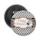 L'ouvreur de bouteille heureux de bouton de toile d'araignée de Halloween comporte une araignée éffrayante de Halloween tournant son Web avec la citation "Halloween heureux" sur un arrière - plan noir et blanc de motif de point de polka. Un accessoire parfait pour envoyer ces salutations spéciales de Halloween pendant la saison des vacances et votre Halloween party.