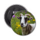 Cet ouvre-bouteille présente une chèvre très belle dans un champ de fleurs sauvages.
