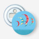 Cerfs-volants colorés kitesurf / kiteboard volant dans le ciel bleu au-dessus de l'océan à thème ouvre-bouteille bouton.