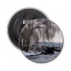 A photographic winter snowy scene with narrowboats on the frozen canal. Canal boats, known in the UK as narrowboats, were originally used to transport goods around the country. They are now used mainly for leisure and attract people from all over the world to enjoy our rural countryside. These boats look very pretty with their brightly colored cabins, traditionally blue, red or green. Flowers and castle designs adorn the more traditional boats.