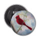 Des médias mélangés originaux peignant par Brenda Thour d'une séance cardinale masculine rouge sur une branche d'arbre nue avec un ciel bleu et rose abstrait. Copyright par Brenda Thour 2005.