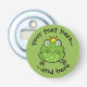 Caricature de grenouille verte à couronne dorée. Prince grenouille. Couleur arrière - plan personnalisée. Deux champs de texte personnalisés sur cercle.