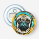 Carlin mignon portant un casque.