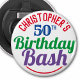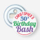 Pour célébrer un anniversaire spécial. Conçu pour quelqu'un qui a 50 ans. Célébration du 50e anniversaire. Fête d'anniversaire. Ajoutez le nom et le numéro. Bouton souvenir de fête d'anniversaire ouvre-bouteille.