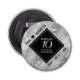 Célébrez le 10e anniversaire de mariage en étain avec cet ouvre-bouteille élégant ! Lettres noires et blanches élégantes avec confettis hexagonaux sur fond de feuille d'étain ajoutent une touche mémorable pour cette occasion spéciale et ce jalon. Personnalisez avec les noms des conjoints et les années de mariage.