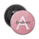 Chic et glam rose rose rose rose parties scintillant scintille ouvre-bouteille métallique, avec un gros monogramme blanc initial et votre nom personnalisé dans une élégante police de caractères gris. Personnalisez cet ouvre-bouteille tendance avec votre nom ou votre monogramme initial. Vous pouvez modifier la couleur du texte, le style et la taille de police à l'aide de l'option personnaliser.