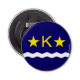 Ouverture de bouteille à bouton avec design avec le drapeau de Kinshasa, capitale de la République Démocratique du Congo, drapeau bleu avec vague blanche, deux étoiles dorées et lettre "K" au centre