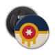 Bottle Opener avec un design avec le drapeau de Tulsa, Oklahoma. Un drapeau beige et bleu marine avec un bouclier or Osage contenant un cercle rouge et une étoile beige à six branches