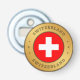 Le drapeau suisse est encastré dans une bague en faux or arrondie. Le mot "Suisse" se trouve en haut et en bas de la conception et a un effet pressé. La paire de trois étoiles décoratives les unes en face des autres, est également conçue avec un effet pressé.