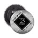 Célébrez le 25e anniversaire du mariage d'argent avec cet ouvre-bouteille élégant! Elégant lettrage noir et blanc avec des confettis hexagonaux sur une feuille d'argent arrière - plan ajouter une touche mémorable pour cette occasion spéciale et extraordinaire jalon. Personnalisez avec les noms du couple et les années de mariage. Design © W.H. Sim, Tous droits réservés. Voir plus sur zazzle.com/expressionsoccasions