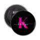 Décapsuleur Élégant Noir Hot Rose Script Monogramme