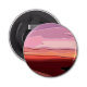 Un design artistique abstrait de coucher de soleil aux couleurs rose, lilas, noir, rouge et pêche.