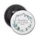 Cadeau de bouchon de mariage parfait. Ce décapsuleur est joli et pratique. Vos invités se souviendront souvent du plaisir qu'ils ont eu à votre fête. Des fleurs et du feuillage bleus poussiéreux créent une jolie couronne botanique. Elle entoure le nom de la future mariée. Suivent la douche de mariée et la date. Cette serviette de douche de mariée fait partie de la collection de douche de mariage florale bleue poussiéreuse. Vous trouverez des invitations et des fournitures de fête pour rendre la planification de votre douche de mariage amusante et facile !