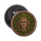 Une Femme Verte sculptée dans le bois avec de la peinture appliquée aux feuilles de chêne et cheveux. Également connu comme tête de feuillage, le Green Man/Wild Man, est un motif d'architecture et d'art, un visage composé ou complètement entouré de feuillage, le plus souvent s'étalant du centre du visage. Outre une fonction purement décorative, l'homme vert est interprété comme un symbole de renaissance, représentant le cycle de la nouvelle croissance qui se produit chaque printemps. Trouvé dans de nombreuses cultures de plusieurs âges à travers le monde, l'Homme Vert est souvent apparenté à des divinités de végétation naturelle. L'équivalent féminin de l'Homme Vert est souvent appelé la Femme Verte ou la Sheela-Na-Gig. Ces personnages, souvent représentés avec une couronne feuillue ou des cheveux luxuriants, symbolisant son lien avec le monde naturel, sont associés à la fertilité, la nature et la nature sauvage. Dans certains contextes, la "Femme sauvage" ou le "Glaistig" (un esprit marin dans le folklore écossais) peuvent également être considérés comme des équivalents féminins de l'Homme vert, représentant différents aspects de la sauvagerie et du pouvoir de la nature.