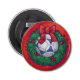 Bal de soccer bleu et blanc dans une couronne blanche sur des ornements de Noël rouge, des cadeaux et des décorations amusantes présentent notre art de futbal original habillé pour les vacances dans une couronne sainte avec un arc rouge vif sur notre arrière - plan rouge texturé à la brosse sèche signature. Cette boule de sport décorée de vacances est parfait cadeau sportif ou décoration pour les vacances. Amusez-vous un Noël amusant et sportif. Tout est amusant et jeux au ITD Sports Center. Conception personnalisée disponible.