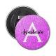 La parties scintillant violette de fille et de glam scintille le nom du monogramme et l'ouvre-bouteille initiale. Personnalisez avec votre nom personnalisé en noir et votre monogramme initial en blanc. Vous pouvez modifier la couleur du texte, le style et la taille de police à l'aide de l'option personnaliser.