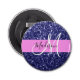 La parties scintillant rose glam et bleu marine scintille le nom de monogramme blanc et l'ouvre-bouteille initiale. Votre nom personnalisé et votre monogramme sont écrits dans un élégant script écrit à la main avec un arrière - plan rose. Vous pouvez modifier la couleur du texte, le style et la taille de police à l'aide de l'option personnaliser. Un cadeau d'anniversaire ou de Noël parfait !