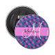 Fille et glam violet, lilas, aqua et bleu sirène parties scintillant scintille le nom monogramme et ouvre-bouteille initial. Votre nom personnalisé et votre monogramme sont écrits dans un élégant script écrit à la main avec un arrière - plan rose. Un cadeau d'anniversaire ou de Noël parfait !