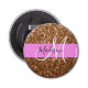 La parties scintillant en glam et rose girly et en bronze scintille le nom de monogramme blanc et l'ouvre-bouteille initiale. Votre nom personnalisé et votre monogramme sont écrits dans un élégant script écrit à la main avec un arrière - plan rose. Vous pouvez modifier la couleur du texte, le style et la taille de police à l'aide de l'option personnaliser. Un cadeau d'anniversaire ou de Noël parfait !