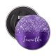Customisez le script de style manuscrit moderne pour créer votre propre ouvre-bouteille à bouton magnétique. Ajoutez une initiale de monogramme pour créer une combinaison initiale de prénom. Fille faux parties scintillant violet et art numérique de feuille de métal brossé qui s'imprime comme une photo.