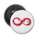 Infinity symbole of continuous stream of red pouring into glass glass glass on white background.