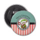 Un ouvre-bouteille à thème de vacances avec un joli elfe de Noël dans une tenue festive verte tenant sur un sucre de canne rayé rouge et blanc. L'arrière - plan est un design superposé avec des rayures rouges et vert pastel sur le dessus. Séparé par une bande de noir avec une texture en damier. Joyeux Noël écrit avec un texte courbe.