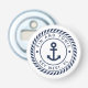 Cet ouvre-bouteille rond cool fait un grand cadeau pour les capitaines de bateaux ou les nouveaux propriétaires de bateaux! Le design nautique présente le nom de votre bateau et le registre du navire en lettres bleu marine sur un badge de corde avec une illustration de l'ancre au centre.