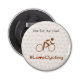 Cet ouvre-bouteille a un arrière - plan de couleur brun pâle, avec un motif doux de feuilles de chêne inspiré par le roulage à travers les feuilles tombés de l'automne. Le slogan simple en brun foncé avec un coeur rouge est #LoveCycling, et il y a un pictogramme d'un cycliste au-dessus. Ajoutez une légende, ou utilisez la légende par défaut "One for the road...". Idéal pour une fête.