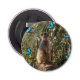 En vedette devant de grands feuilles verts est un Meerkat en service de garde avec des papillons bleus.