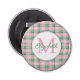 Ce joli ouvre-bouteille monogrammé est doté d'un plaid rose et vert preppy. Personnalisez le monogramme avec votre choix de nom et d'initiale. Idéal pour les sacs cadeaux et les fournitures de fête personnalisées