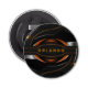 L'arrière - plan de jeu pour le haut-parleur Bluetooth offre une combinaison frappante de lignes géométriques argent, noir et orange. Les lignes sont disposées dans un motif captivant qui ajoute une touche de sophistication et d'élégance à votre configuration de jeu.