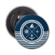 Design à thème nautique avec symboles nautiques (ancre, voilier, voilier, boussole) décoration sur arrière - plan rayé blanc et bleu marine.