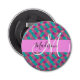 La parties scintillant de sirène verte et turquoise brille le nom du monogramme et l'ouvre-bouteille initial. Votre nom personnalisé et votre monogramme sont écrits dans un élégant script écrit à la main avec un arrière - plan rose. Un cadeau d'anniversaire ou de Noël parfait !