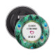 Un ouvre-bouteille personnalisé pour le mariage. Un motif aux couleurs vives, aux plumes de paon exotiques et sauvages, dans un joli turquoise vert bijou, bleu aqua et cobalt. Artistique et fantaisie, créée avec des aquarelles. Le centre a un cadre circulaire sophistiqué avec vos informations mariages personnalisées à l'intérieur et une jolie illustration cardiaque. Un design chic et design.
