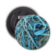 Un design coloré de filet de pêche et de corde bleu vif d'un bateau et stocké sur la jetée du port.